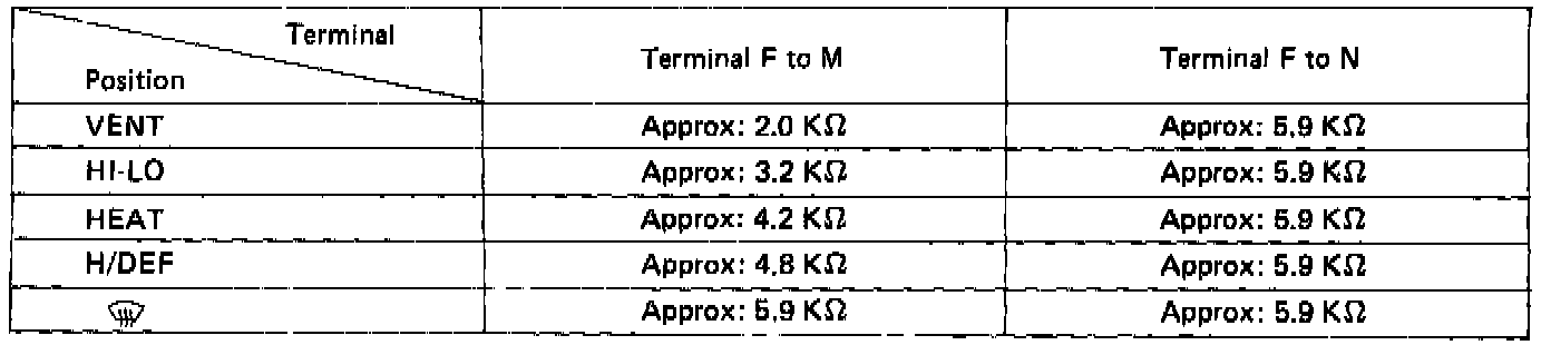Check resistance between the terminals, as shown in the chart.