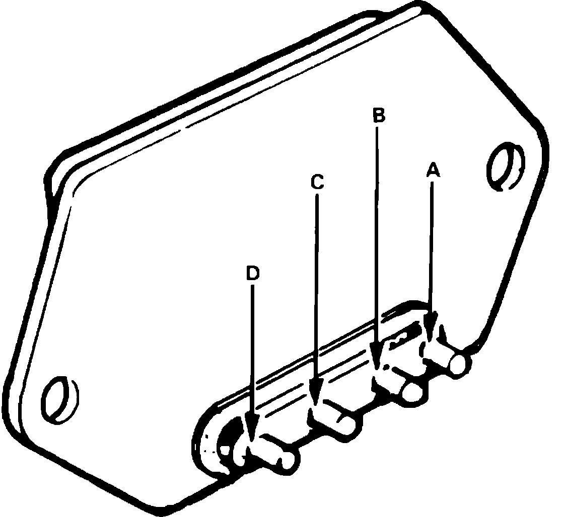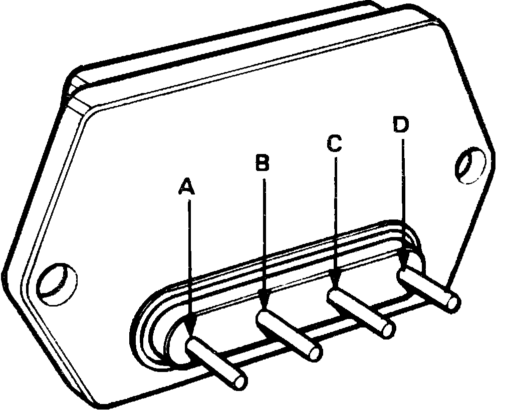 6. Connect ohmmeter positive lead to terminal D (terminal A on Legend) of igniter and negative lead to igniter case, then check resistance of igniter. Resistance should be greater than 50,000 ohms at room temperature.