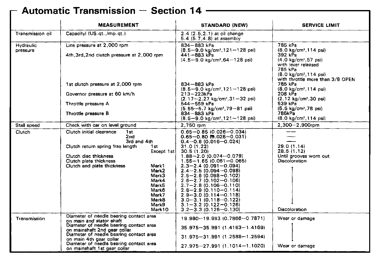 CA 4-spd A/T, Line Pressure & Stall Speed Clearances: