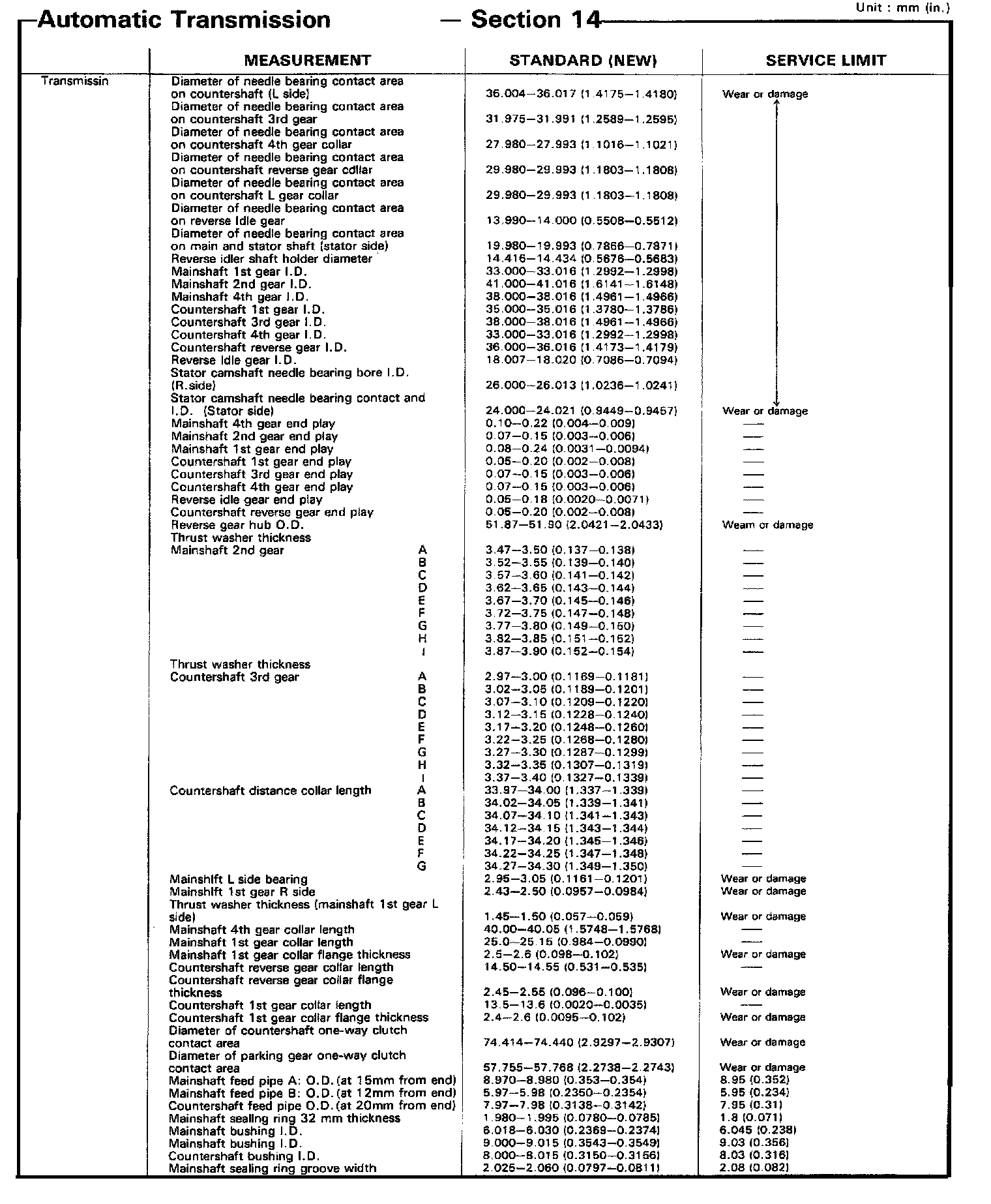 CA 4-spd A/T, Shaft Diameter, End Play/Thickness: