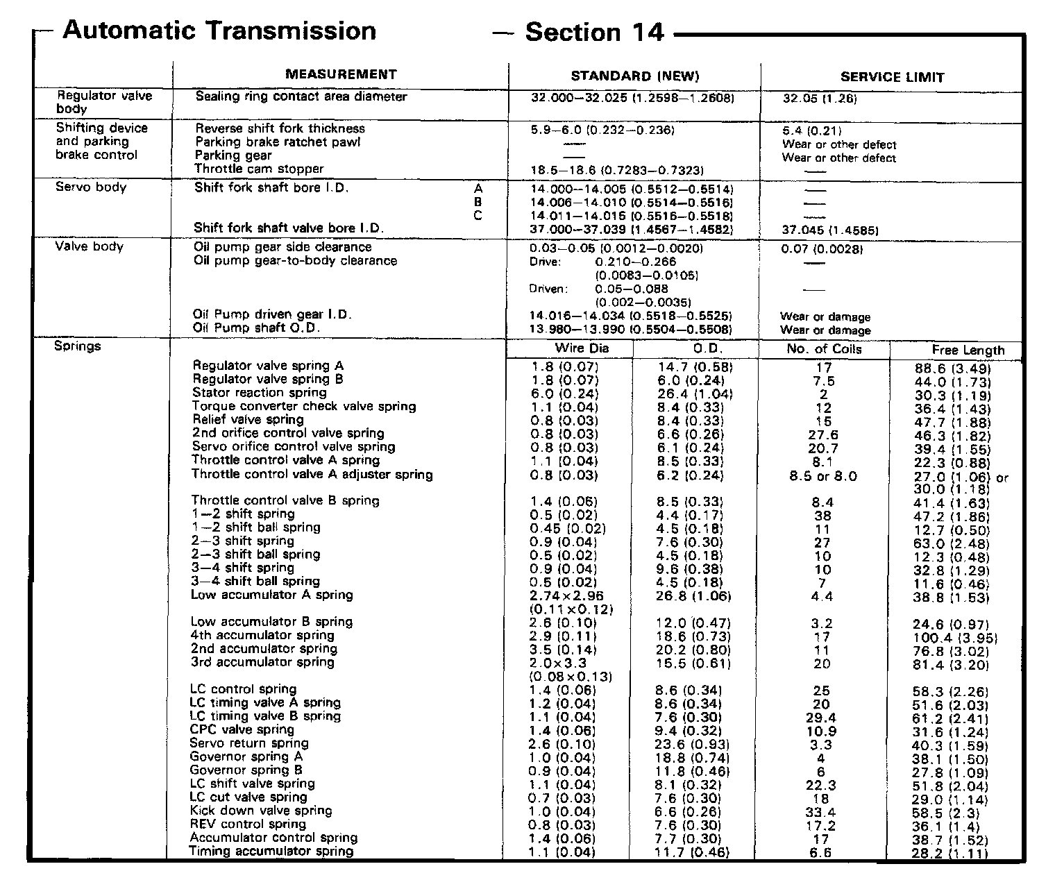CA 4-spd A/T, Valve/Servo Body & Springs Dimensions: