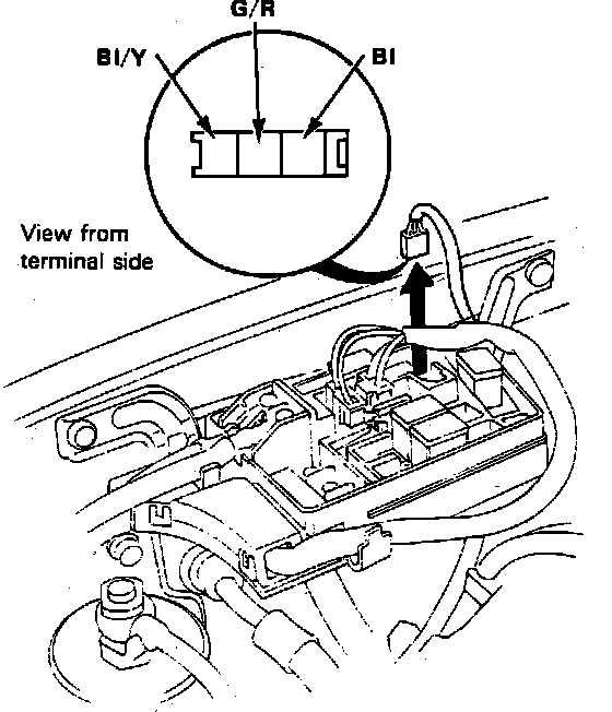 2. Turn ignition switch On, then connect voltmeter positive lead to black/yellow terminal and negative lead to black terminal. Observe voltmeter and ensure battery voltage exists.