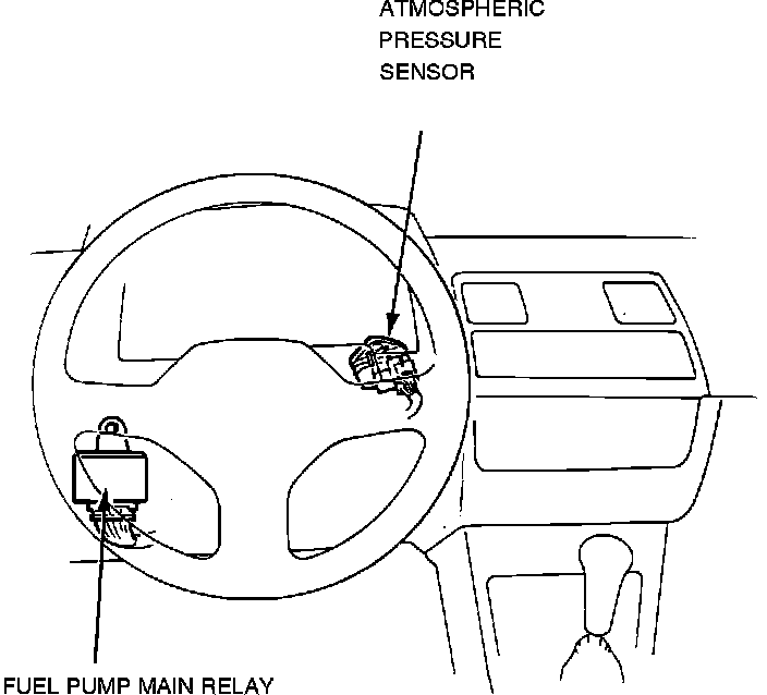 The Fuel Pump Main Relay is located under the dashboard area. It is to the left of the steering wheel, mounted on the back of the fuse panel.