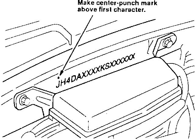 15. Center-punch a completion mark above the first digit of the engine compartment VIN.