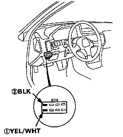 4. Attach the positive probe of voltmeter to the YEL/WHT wire (1) and the negative probe to the BLK wire (2).