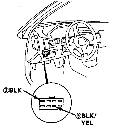 5. Attach the positive probe of voltmeter to the BLK/YEL wire (5) and the negative probe to the BLK wire (2).