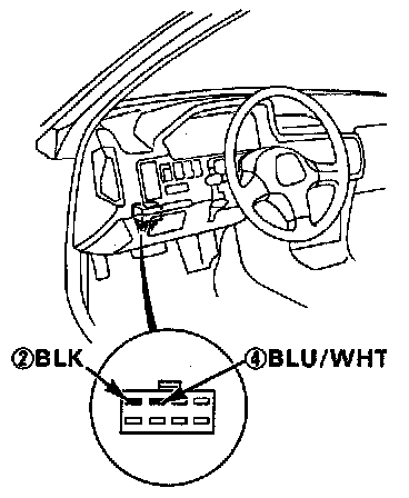 7. Attach the positive probe of voltmeter to the BLU/WHT wire (4) and the negative probe to the BLK wire (2).