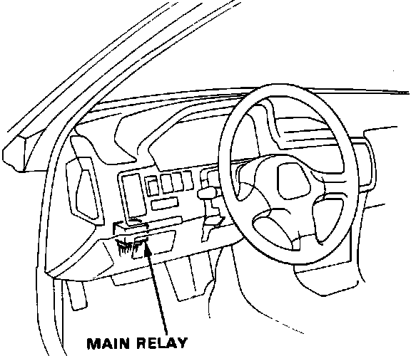 The main relay is mounted under the dashboard near the rear of the fuse panel. Fig. 3