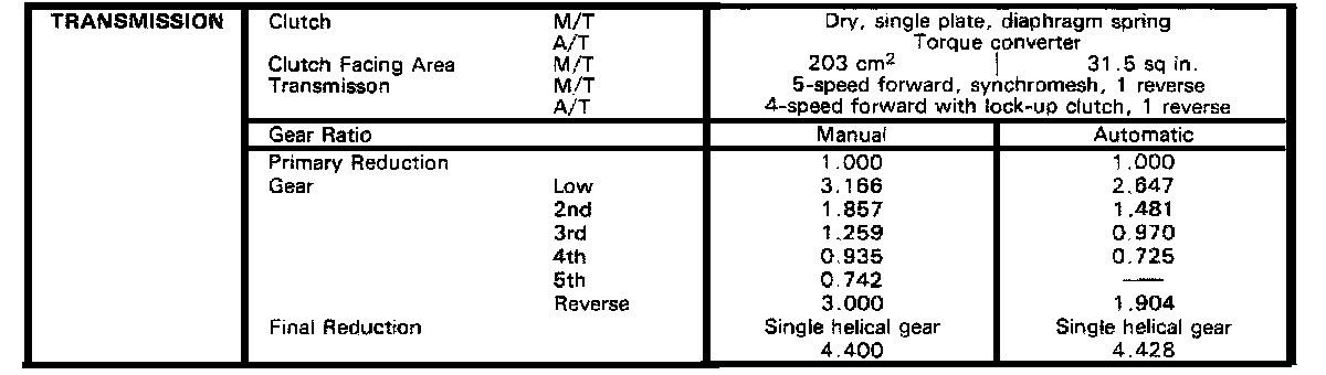 Manual/Automatic Transmission Gear Ratios: