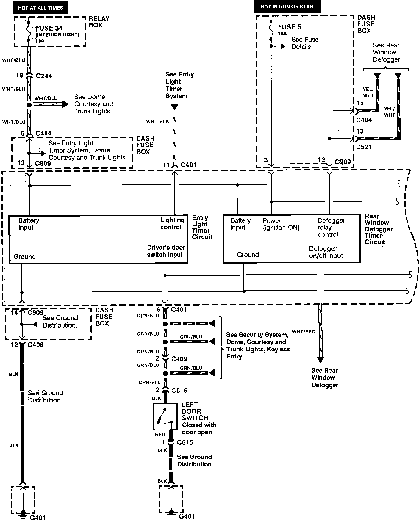 Integrated Control Unit: Entry Light, Light-on Warning, Rear Window Defogger Timer And Side Marker Flasher Circuits: