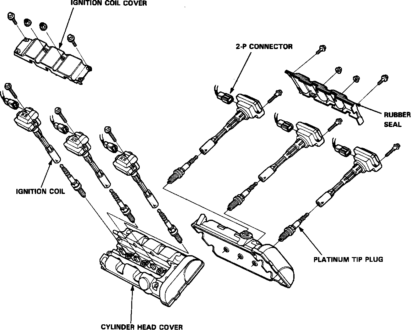 NOTE: Different ignition coils and ignition coil covers are used for the front side and rear side. Be sure to use correct ones when mounting them.