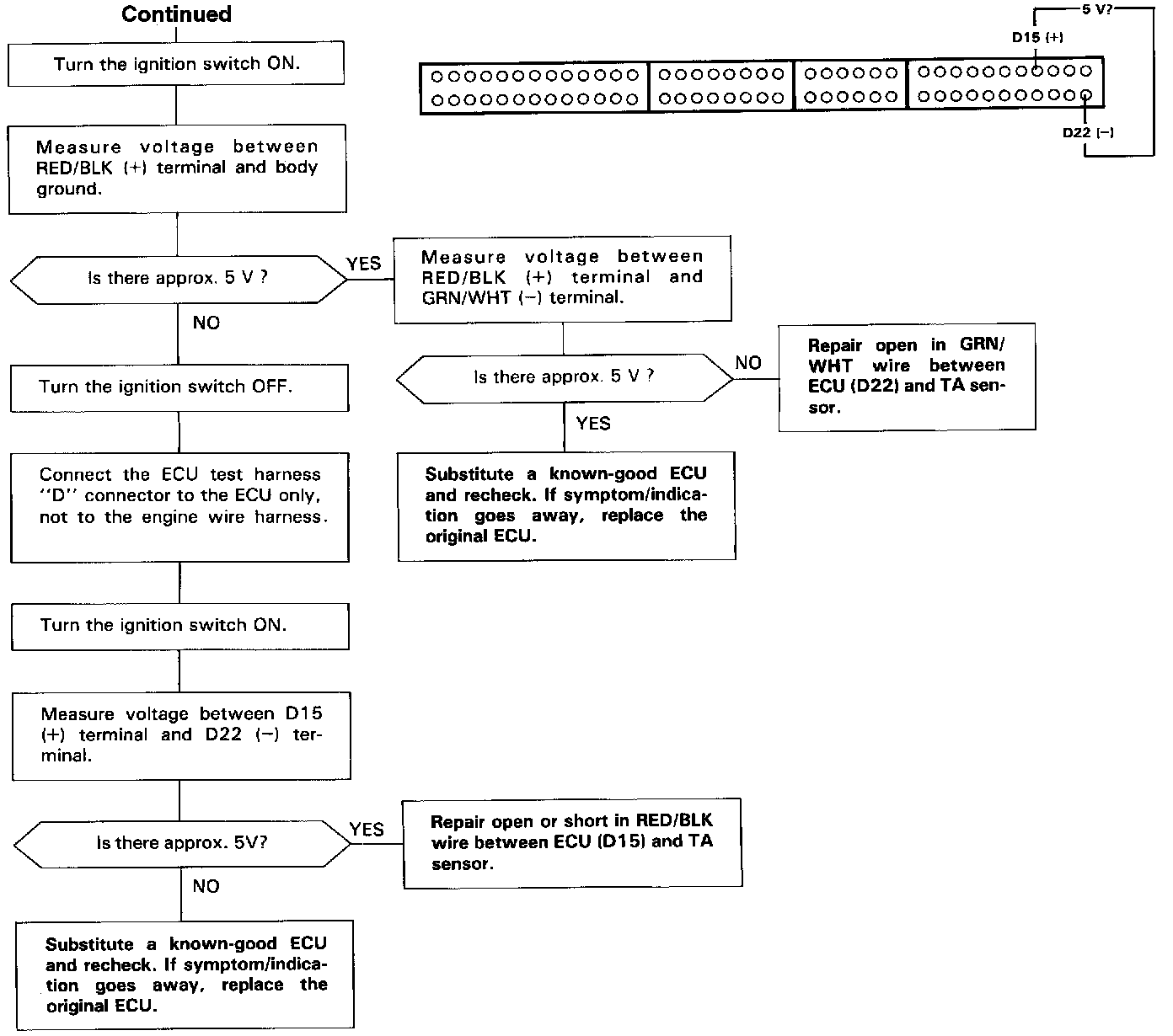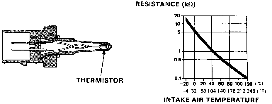 The TA sensor is a temperature dependant resistor (thermistor) The resistance of the thermistor decreases as the intake air temperature increases as shown.
