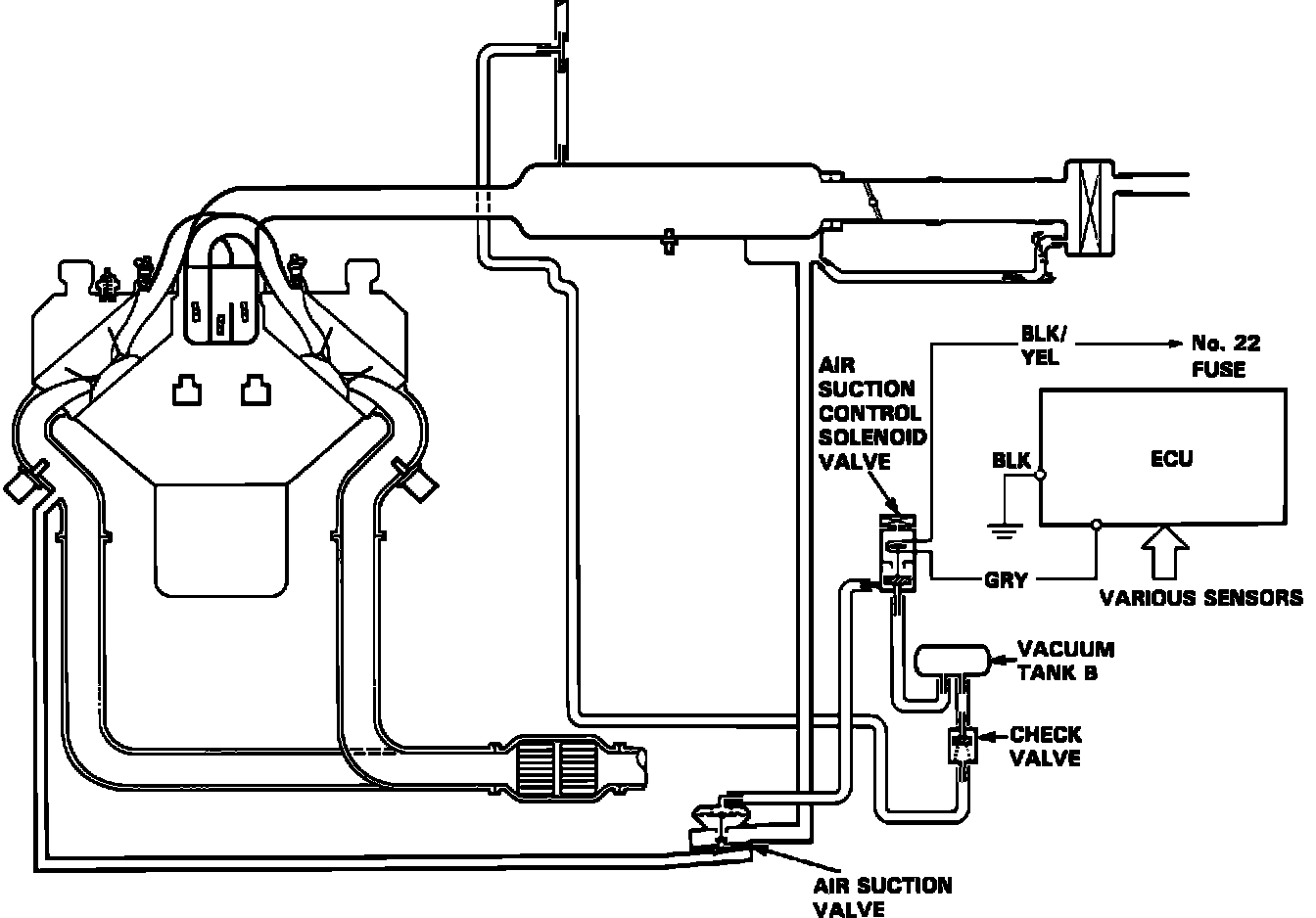 b. If bubbling sound is heard, go to air suction control solenoid valve test 2. SEE "COMPUTERIZED ENGINE CONTROLS"
