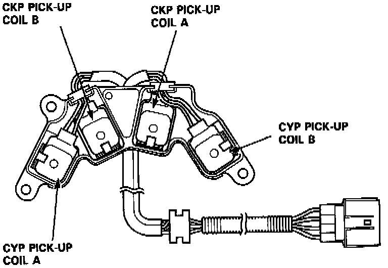 The CKP/CYP sensor is located at the front of the rear cylinder head underneath the manifold cover.