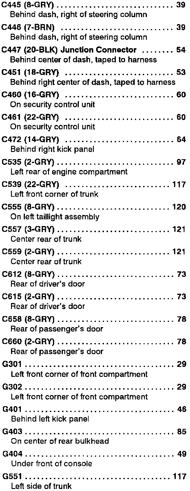 Component Location Index
