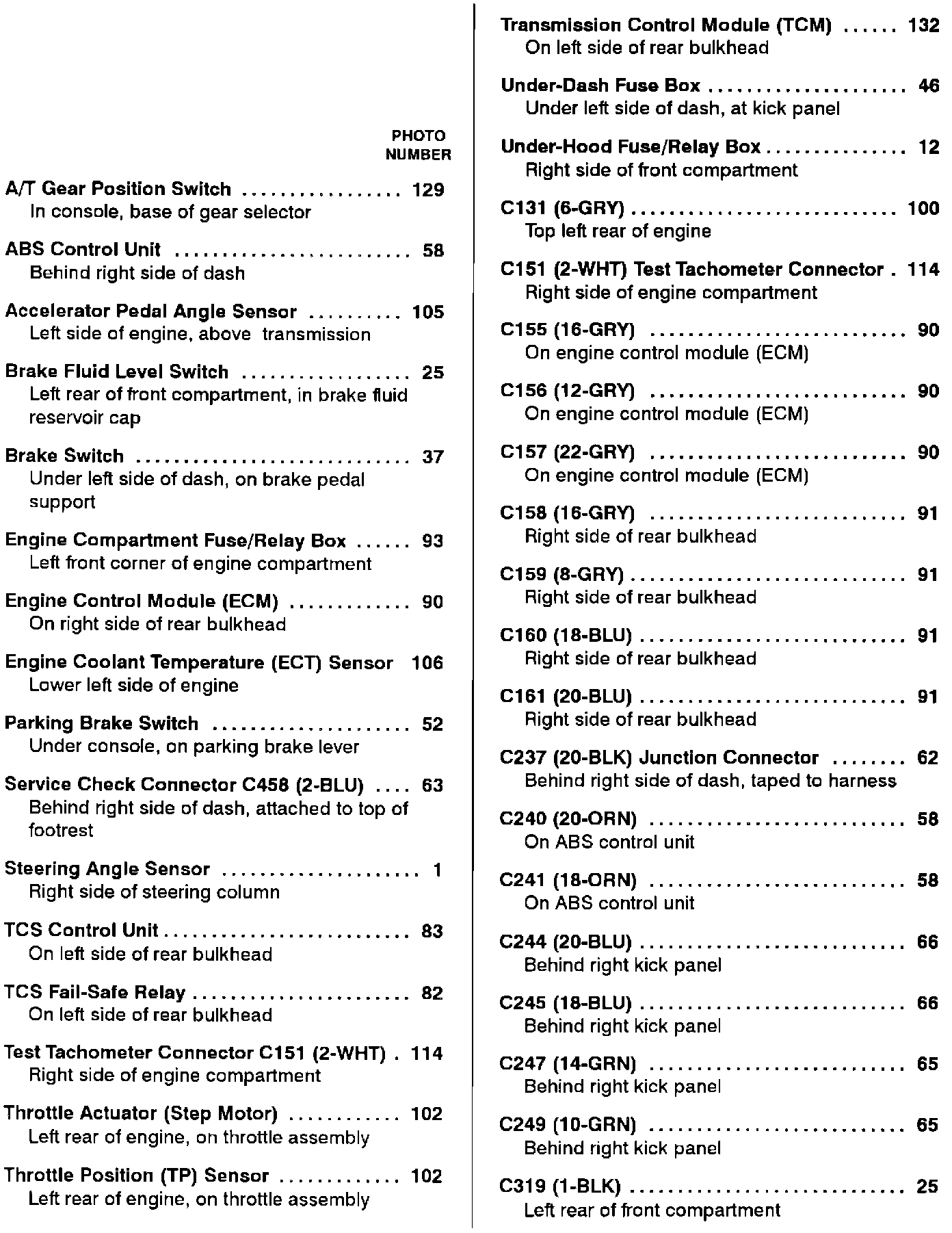 Component Location Index