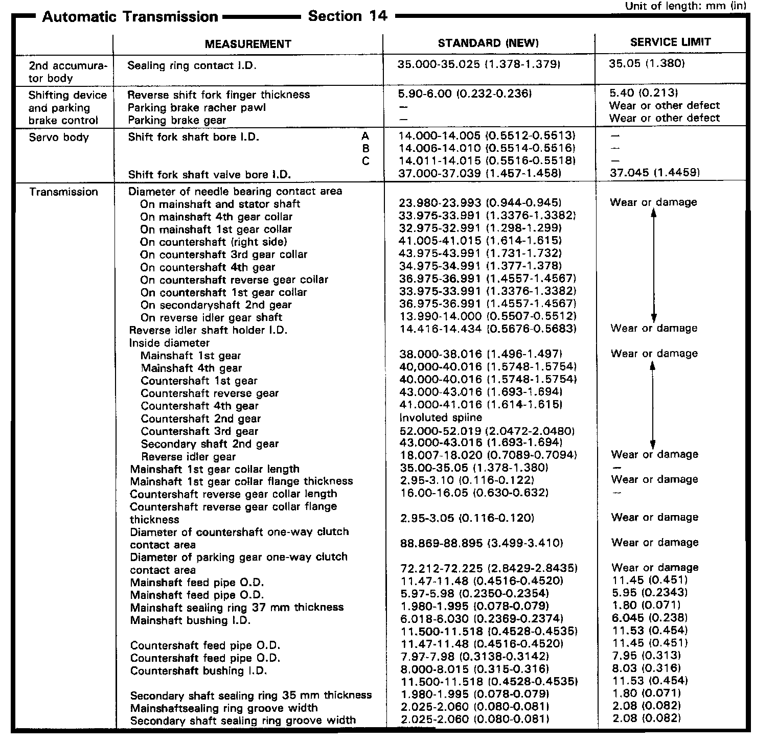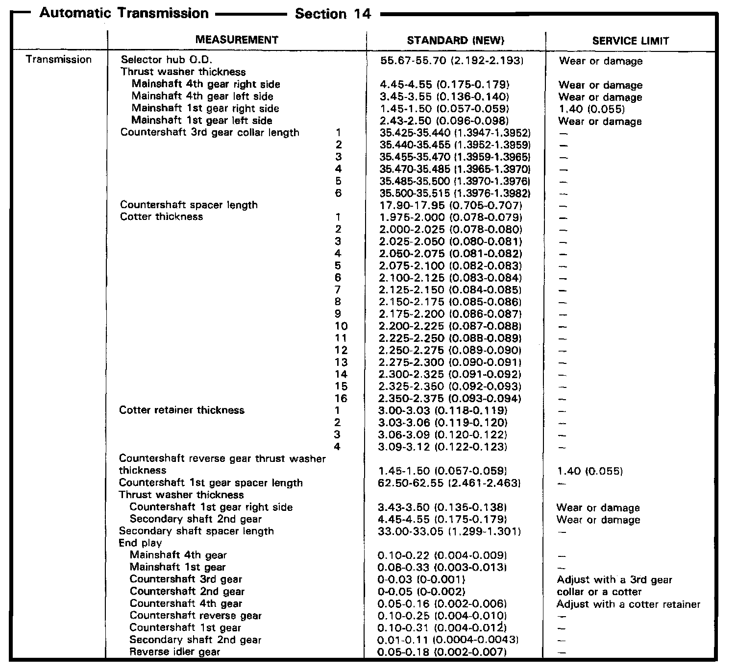 MR9A 4-spd A/T, Mainshaft/Countershaft Measurements: