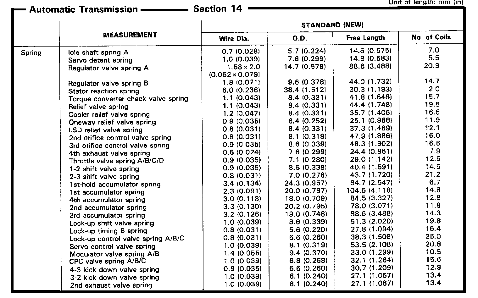 MR9A 4-spd A/T, Spring Measurements:
