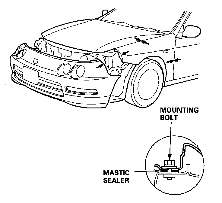 NOTE: Apply the mastic sealer to the mounting positions of the front fender.