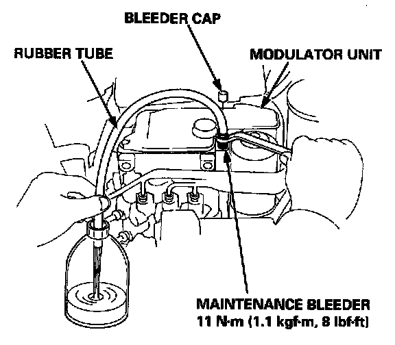 CAUTION: Do not loosen the maintenance bleeder too much. The high-pressure brake fluid can burst out.