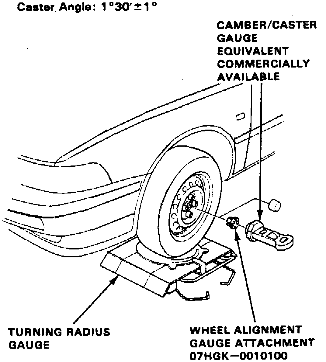 Ensure tires are properly inflated prior to checking or adjusting caster angles. Caster angle is not adjustable, however, the following procedure may be used to ensure caster is within specifications.