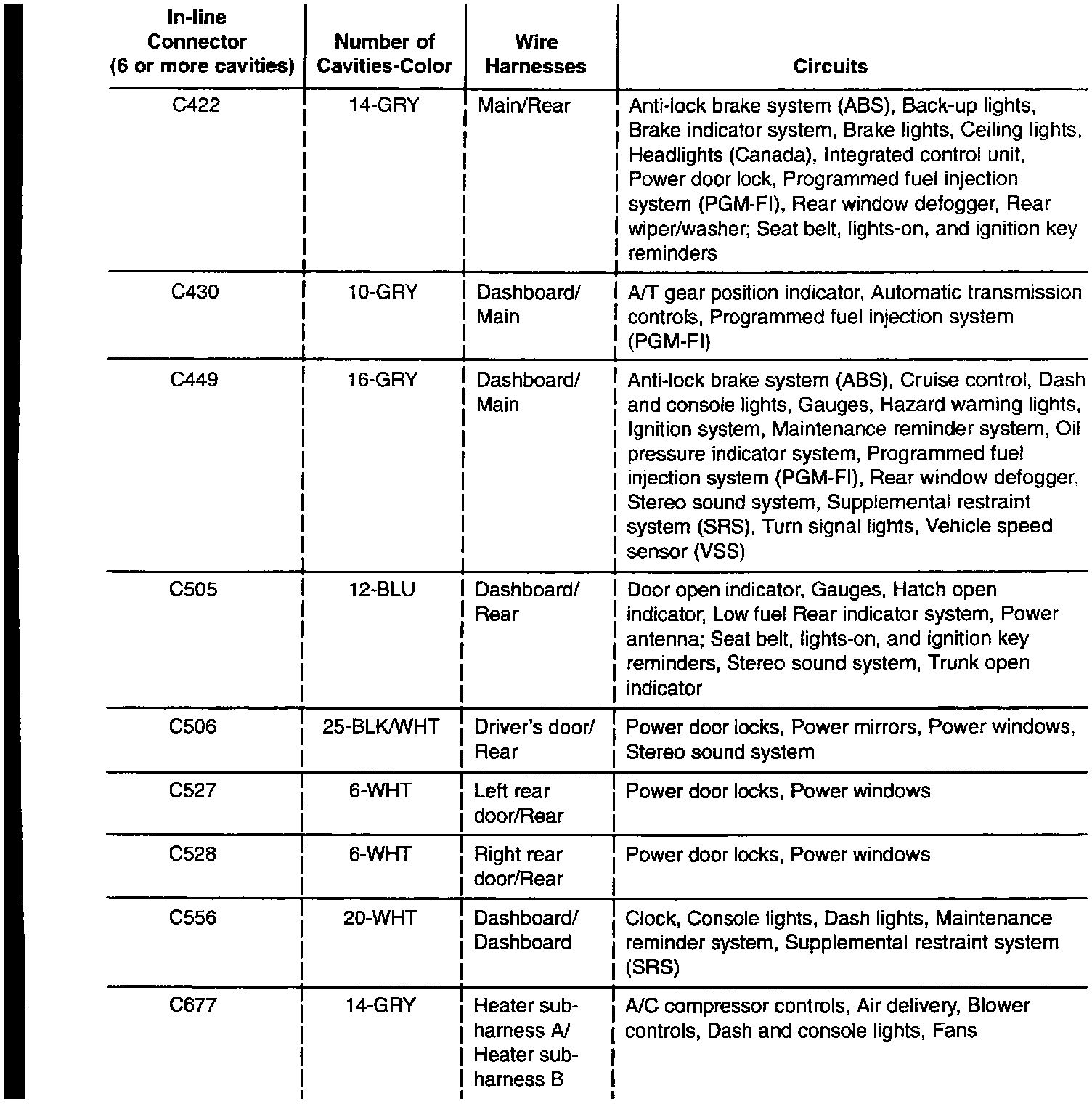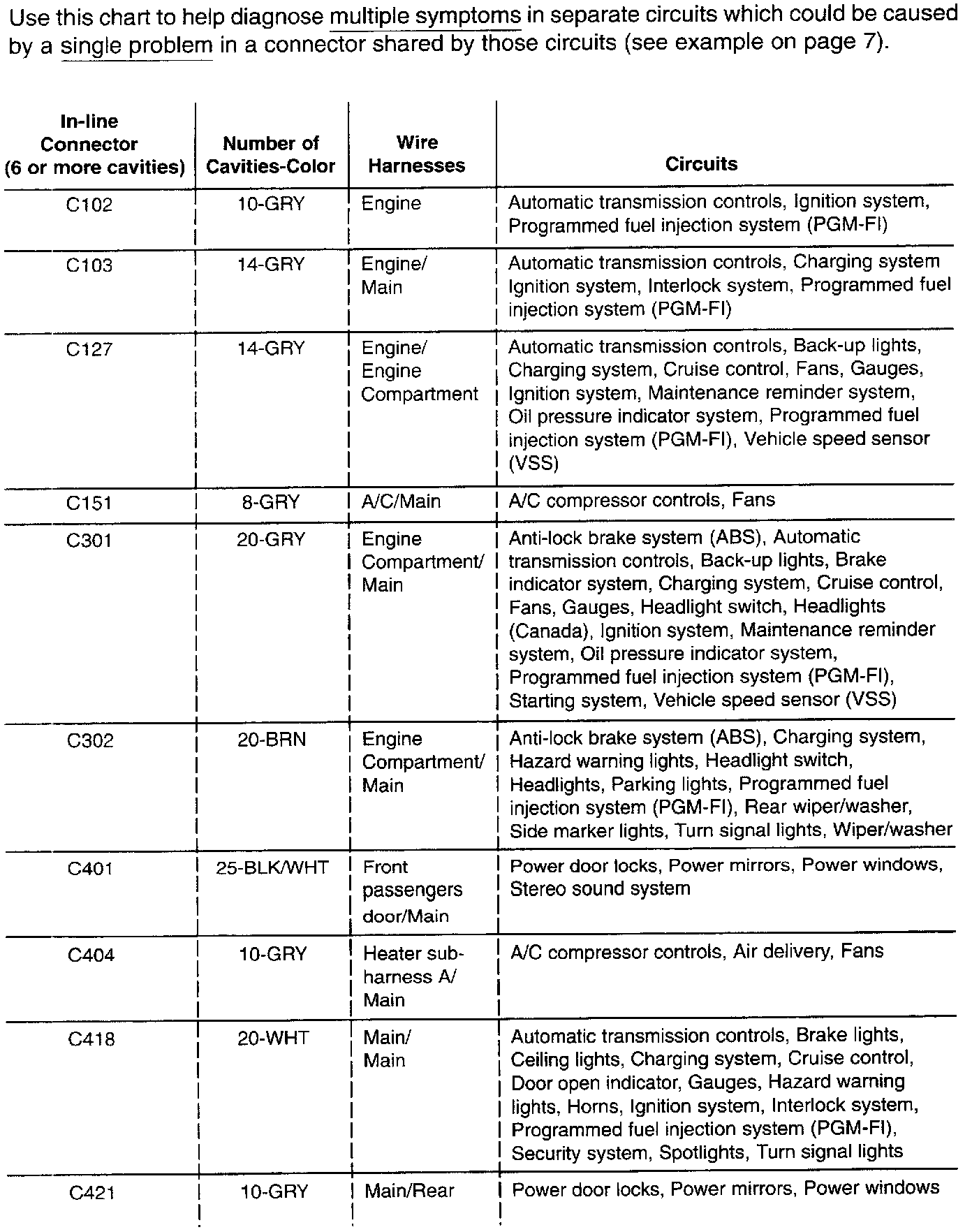 In-Line Connector Circuit Identification: