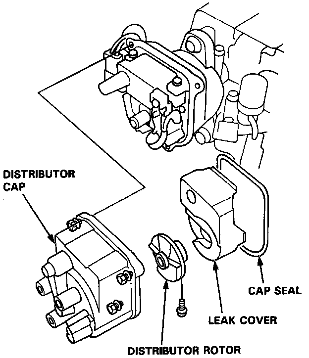 1. With ignition off, remove the distributor cap, rotor, and cap seal, then remove the inner cover.