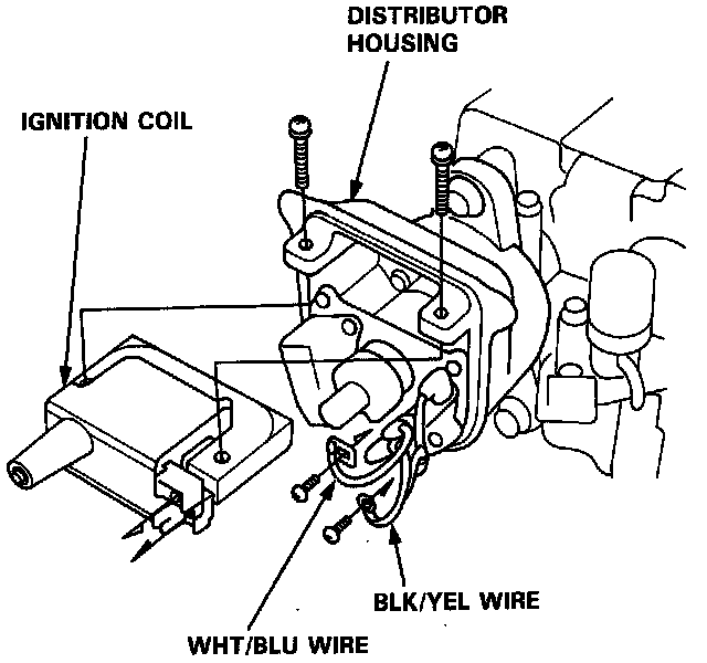 3. Remove the coil mounting screws and slide the ignition coil out of the distributor housing.