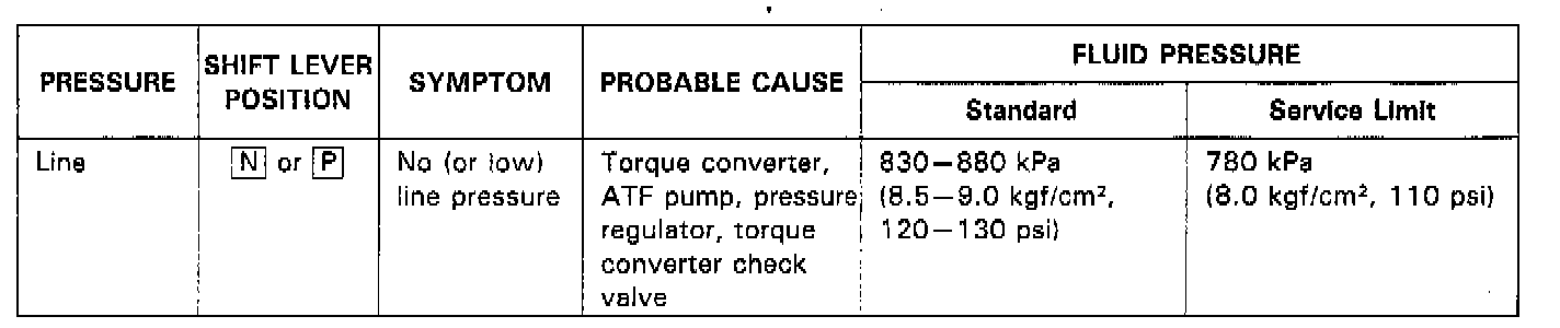 NOTE: Higher pressures may be indicated if measurements are made in shift lever positions other than or position.
