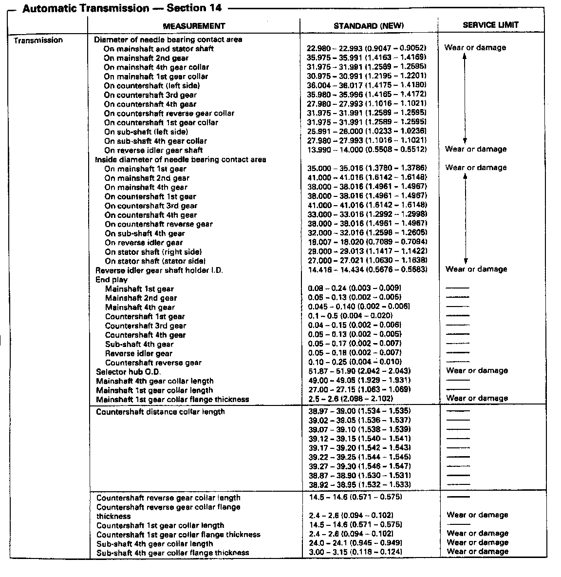 MP7A 4-spd A/T, Mainshaft/Countershaft Measurements: