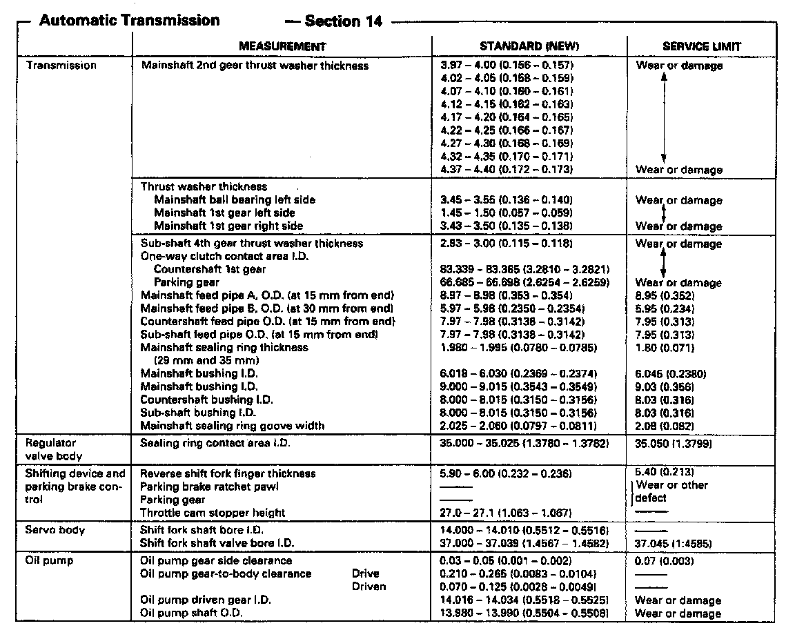 MP7A 4-spd A/T, Transmission Spring Measurements: