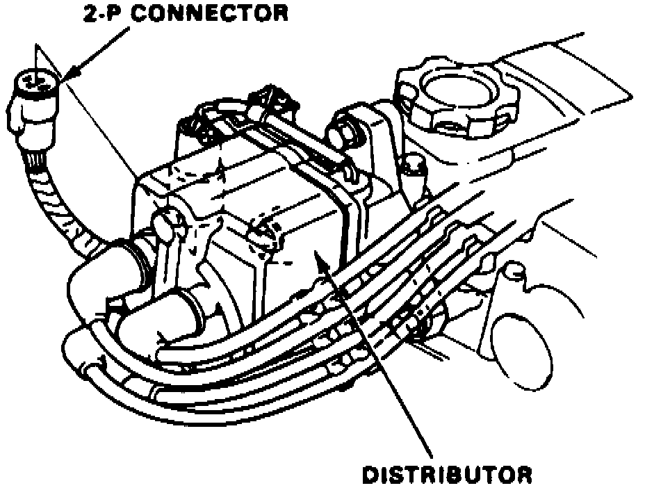 2. Disconnect ignition coil primary lead two pole connector at distributor, Fig. 9.