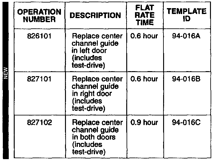 Replace the center channel guide on the affected door(s) with the parts listed under PARTS INFORMATION.