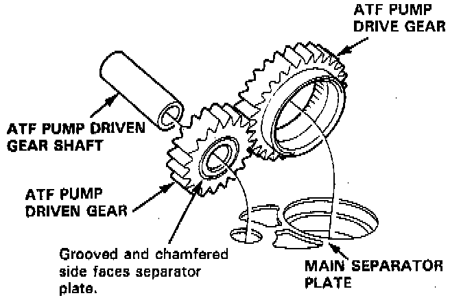 NOTE: Install the ATF pump driven gear with its grooved and chamfered side facing down.