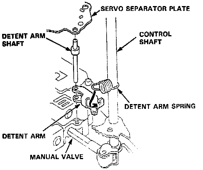 6. Install the detent arm and arm shaft in the main valve body, then hook the detent arm spring to the detent arm.