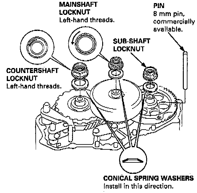 - Mainshaft and countershaft locknuts have left hand threads.