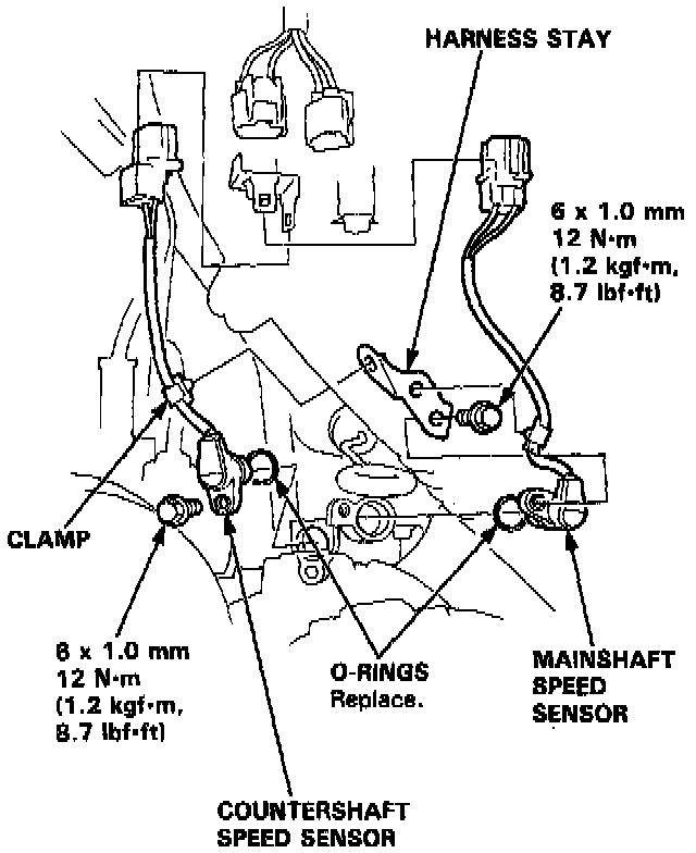 3. Remove the mainshaft and countershaft speed sensors.