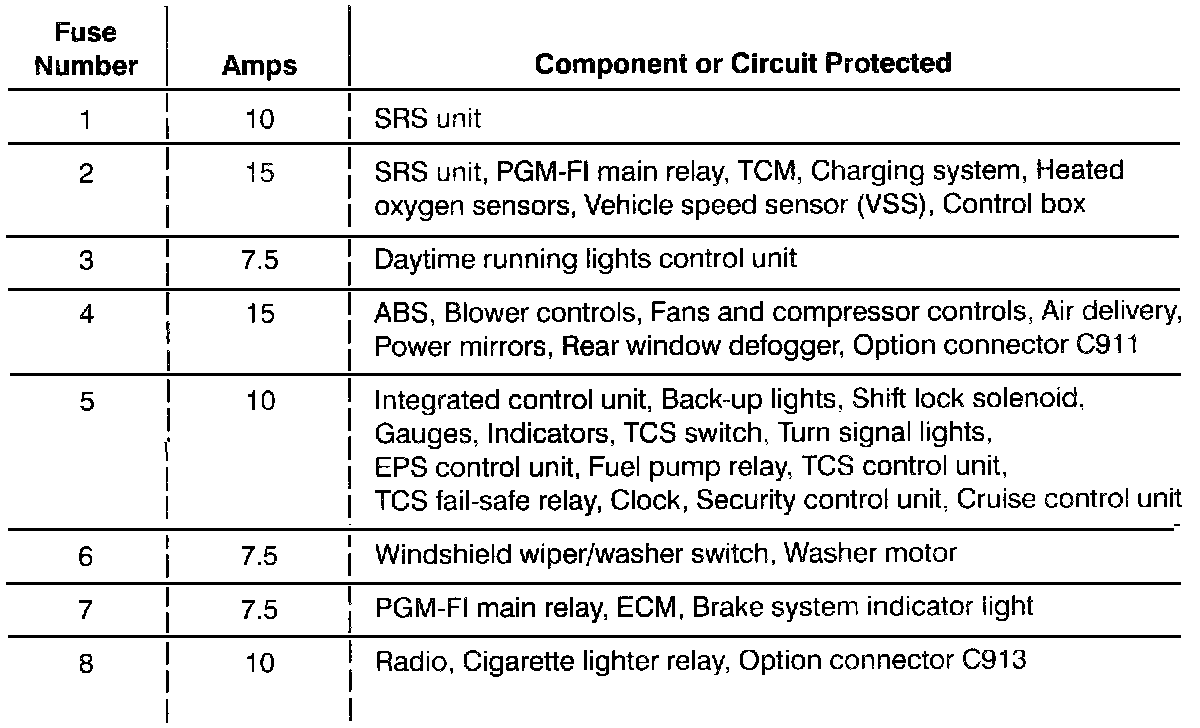 Fuse/Relay Information - Under-dash Fuse Box: