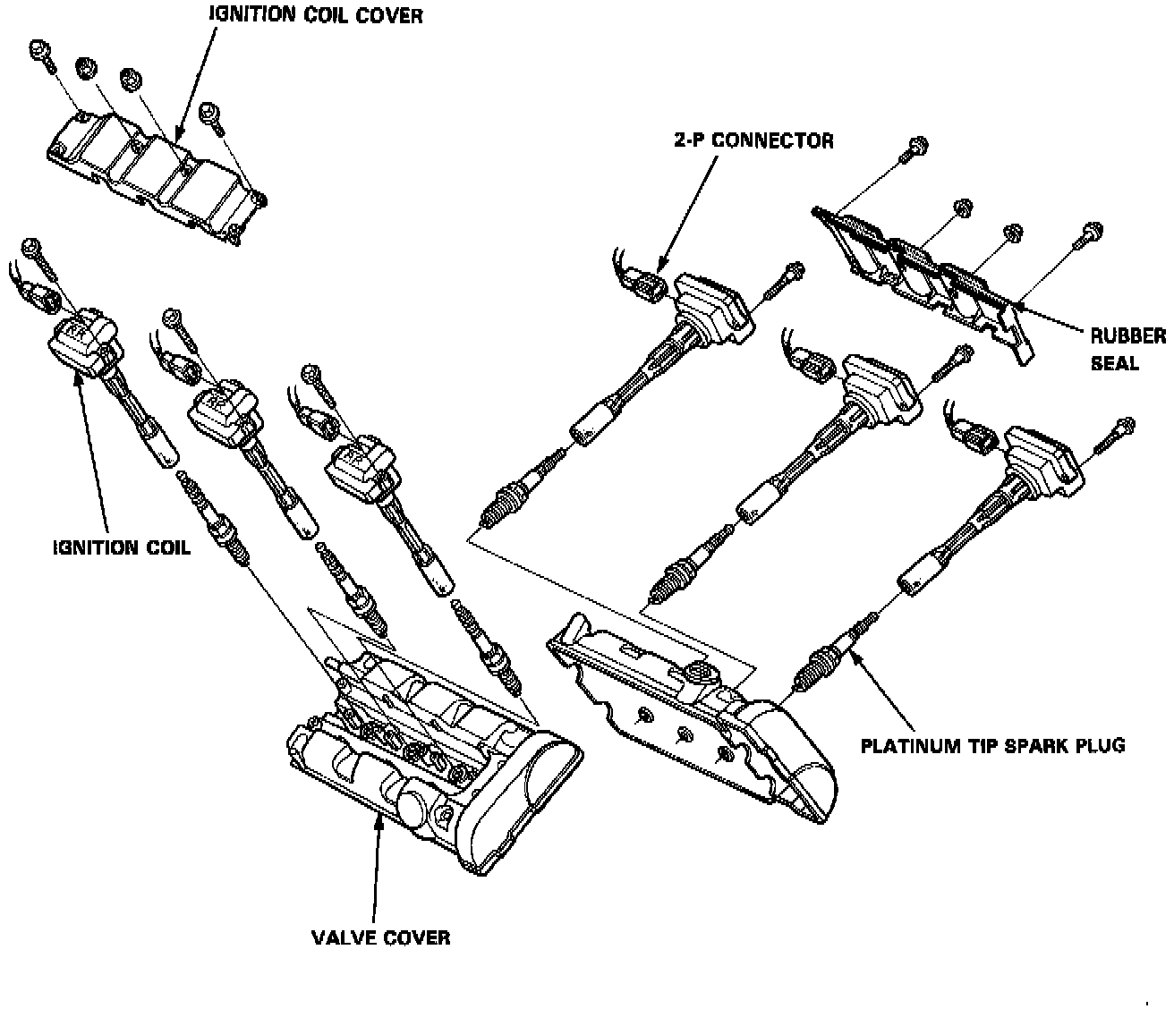 NOTE: Different ignition coils and ignition coil covers are used for the front and rear cylinders. Be sure to use the correct ones when mounting them.