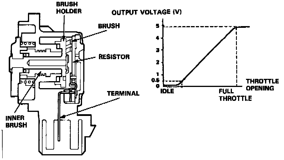 Throttle Position Sensor Sectional View And Output Voltage: