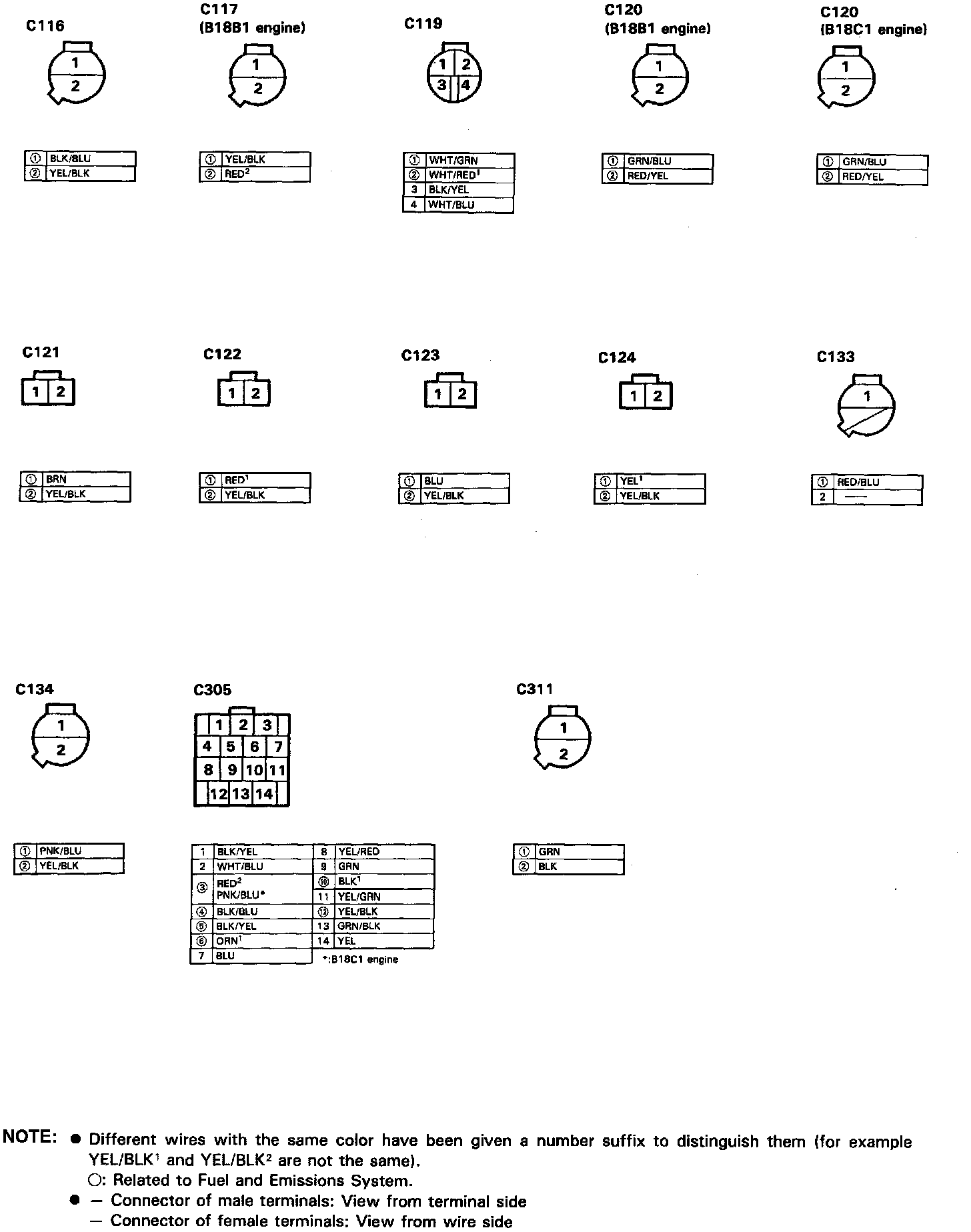 - Different wires with the same color have been given a number suffix to distinguish them (for example, YEL/BLK1 and YEL/BLK2 are not the same).