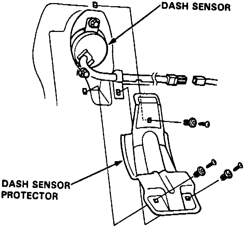 c. Disconnect electrical connector, then remove two dash sensor attaching bolts and dash sensor.