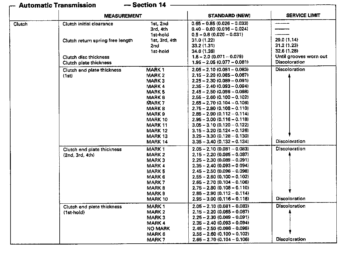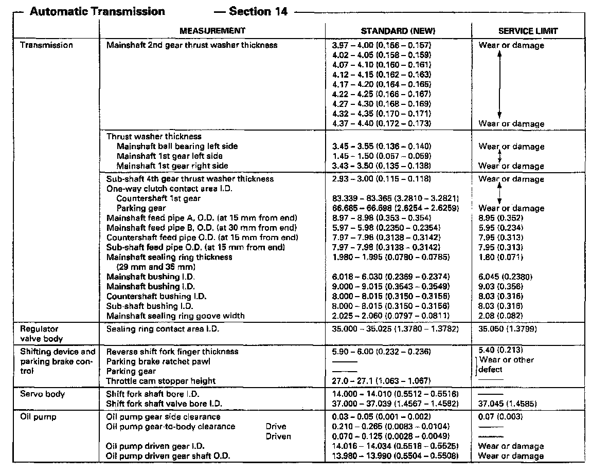 SP7A 4-spd A/T, Mainshaft/Countershaft, Oil Pump Clearances: