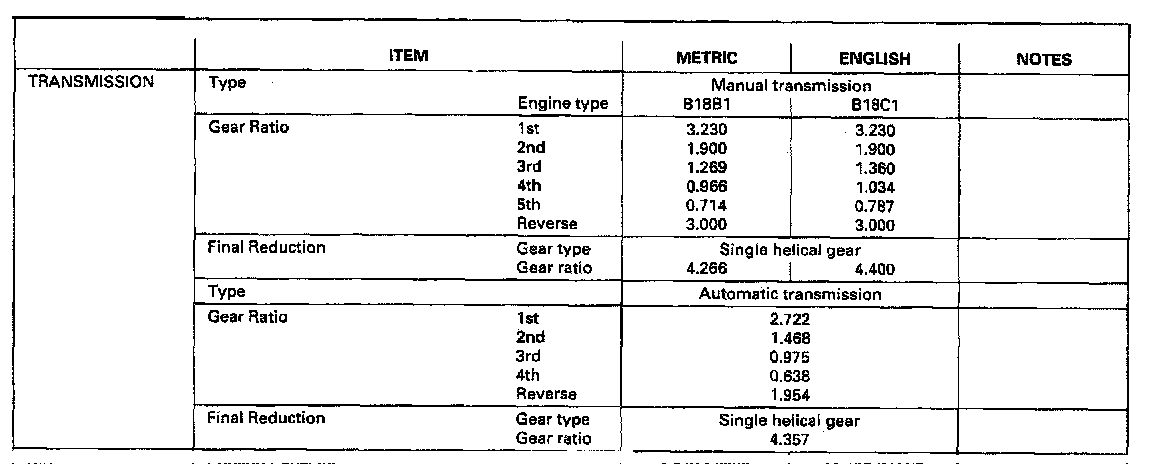 SP7A 4-spd A/T, Transmission Spring Measurements: