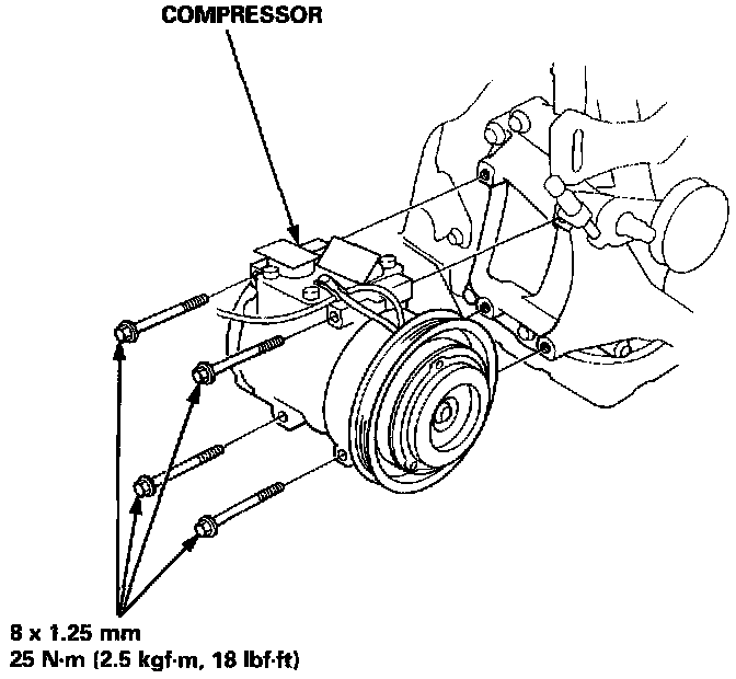 NOTE: Be careful not to damage the radiator fins when removing the compressor.