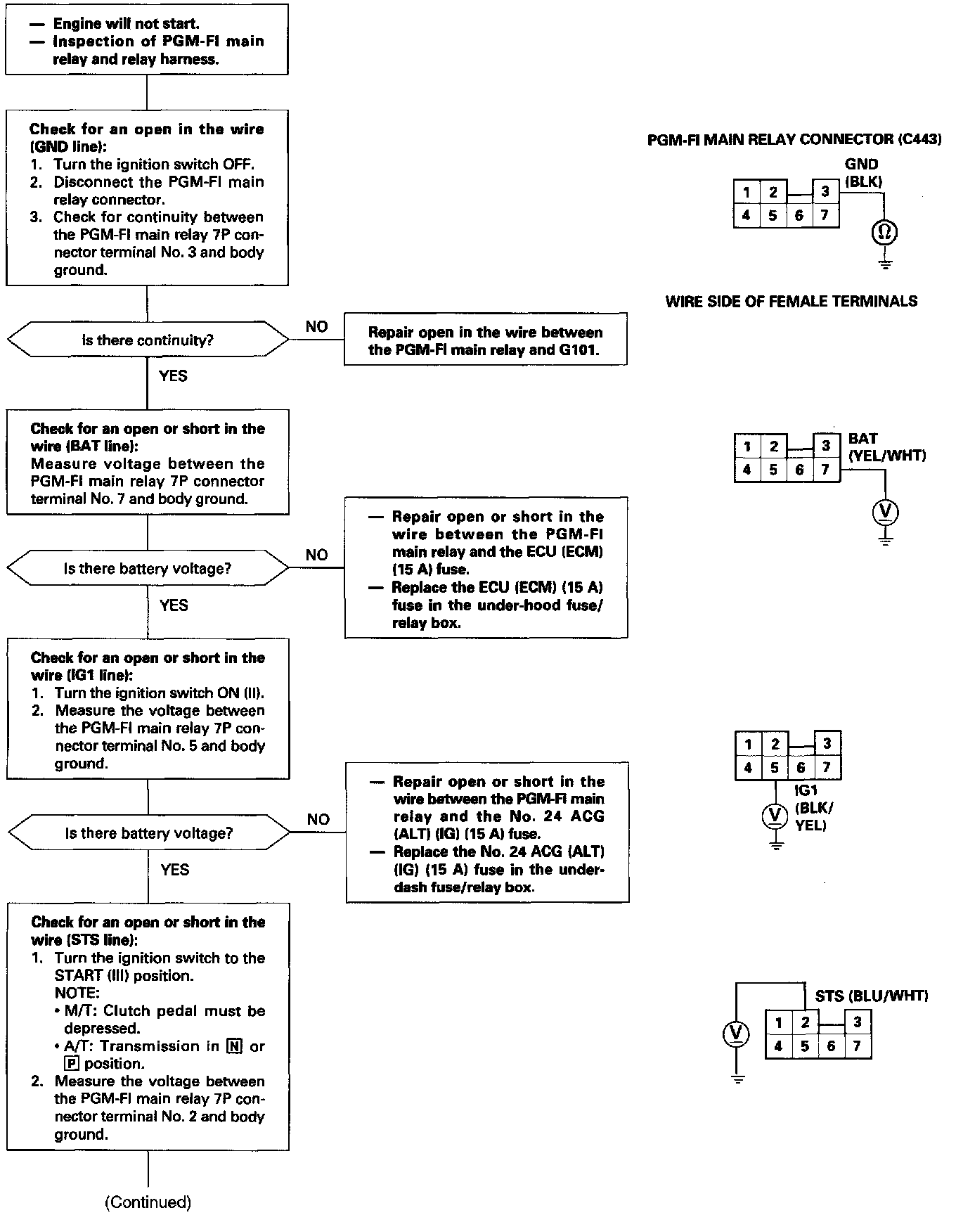 - If the car starts and continues to run, the PGM-FI main relay is OK.