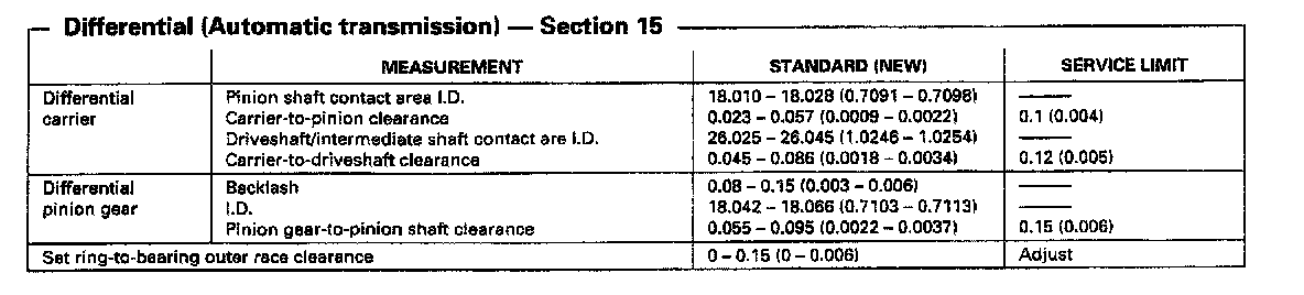 S4XA 4-spd A/T, Differential Measurements: