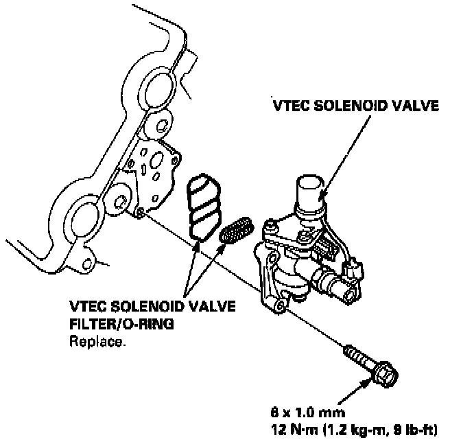 4. If the filter is not clogged, push the VTEC solenoid valve with your finger and check its movement. If VTEC solenoid valve is normal, check the engine oil pressure.