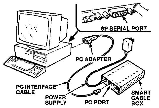 2. Connect the small end of the PC interface cable to the PC port on the Smart Cable box. (Some cables have a yellow label near the small end to help you identify it.)