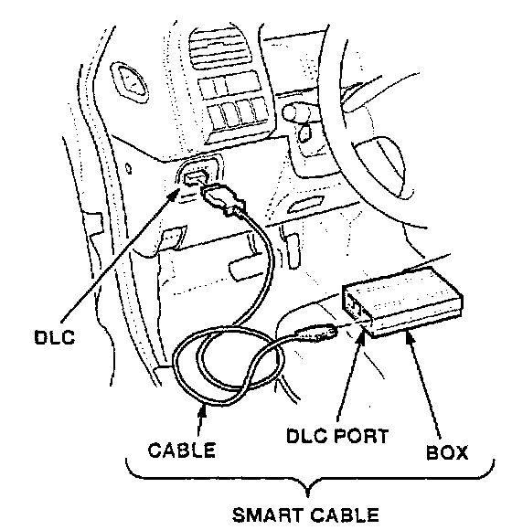 9. Disconnect the Smart Cable from the DCS workstation, then take it to the vehicle. Turn the ignition switch ON (II), and connect the Smart Cable to the vehicle's DLC.